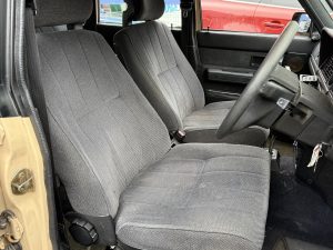 シート・ドアトリムともに落ち着いたグレーで統一され、当時の雰囲気をしっかりと残した空間。