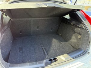 室内はグレー基調のファブリックシートで、乗り込んだ瞬間に柔らかい雰囲気が広がります。