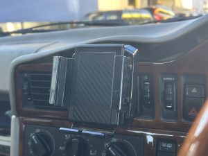 また、スマートフォンホルダーやETCも装着されており、ナビアプリや高速道路の利用など、現代の使い方にもきちんと対応。